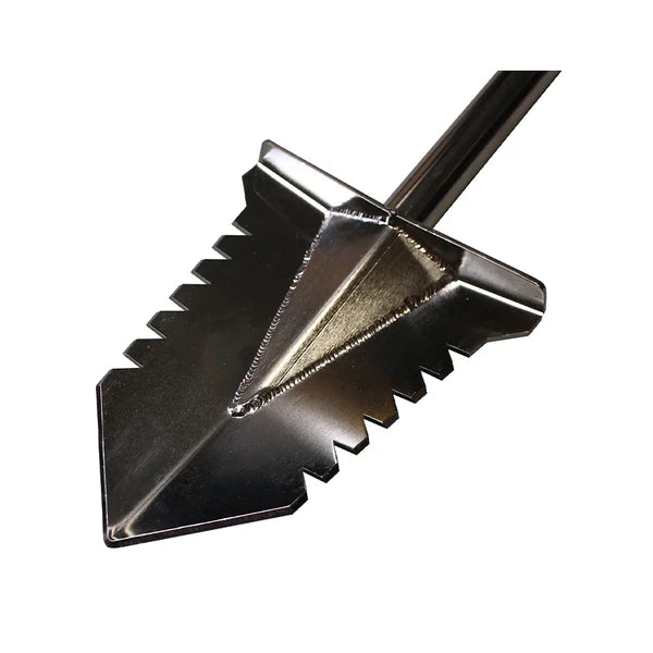Built for strength and reliability, this 85 cm shovel from Swagier is an excellent tool for metal detecting and outdoor digging tasks. Manufactured from tough stainless steel, it is designed to handle compact ground and demanding conditions with ease. The working edge features fine serrations along its full length, helping to cut through hard soil, roots, and light vegetation efficiently.